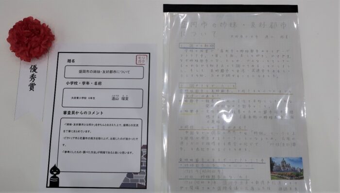 「盛岡市の姉妹・友好都市について」 太田東小学校6年生 遠山瑠夏さん